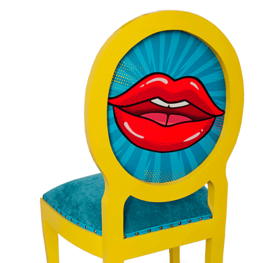 ¿Quieres darle un toque único y divertido a tu negocio? Nuestra silla de madera con diseño pop es la opción perfecta.